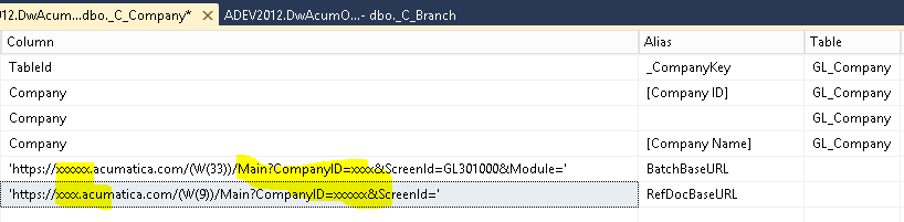 Edit the _C_Company SQL view to contain the appropriate URL's that enable the report to link back to the Acumatica source transaction: