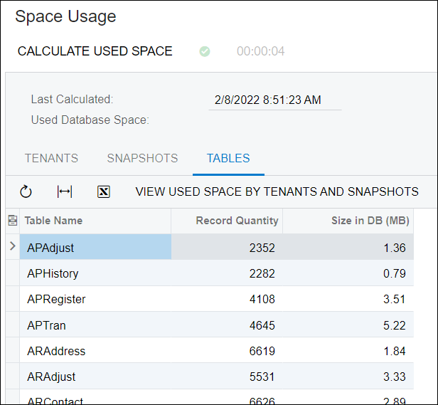 You’ll then see the table Record Quantity and Size in DB (MB).