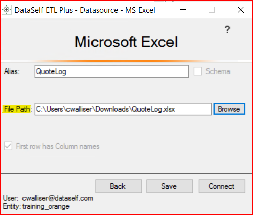 For Excel sources, the File Path is to the Excel file’s filename.