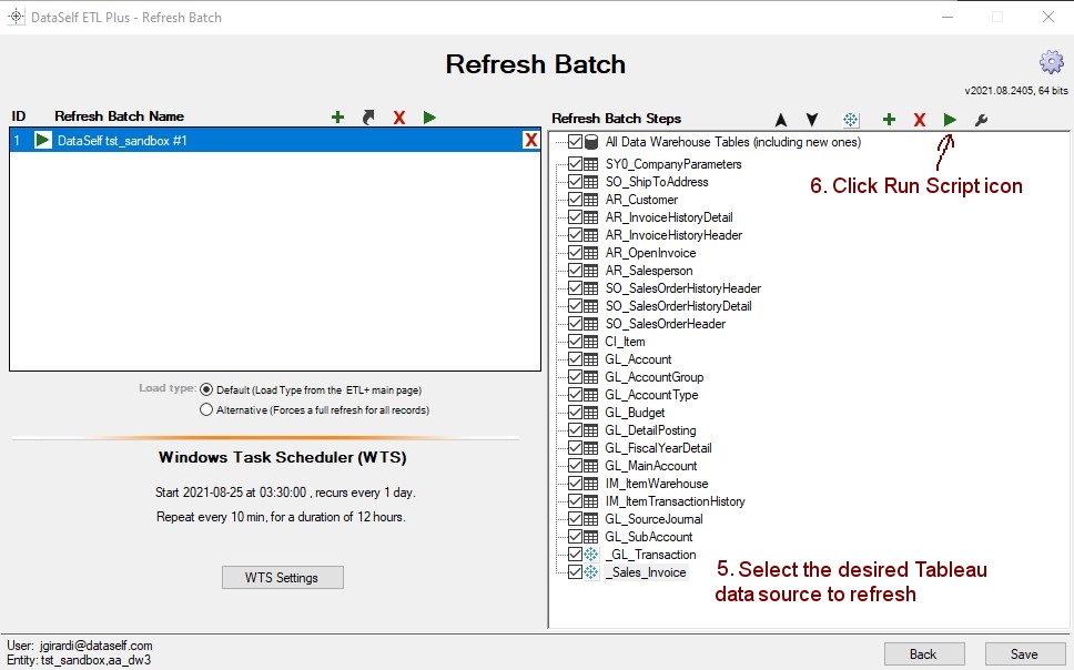 5. On the Refresh Batch Steps panel, select the Tableau Data Source to be refreshed.