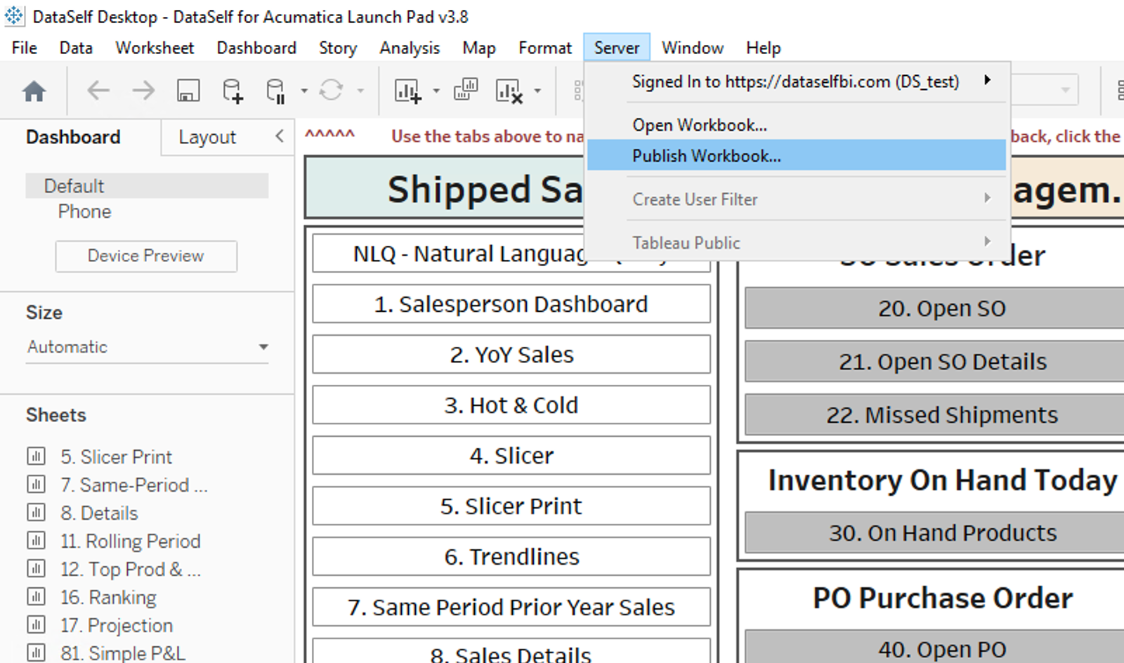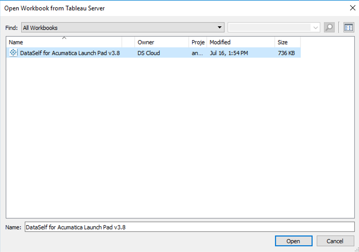 Open the workbook in Tableau Desktop by clicking Server→ Open Workbook