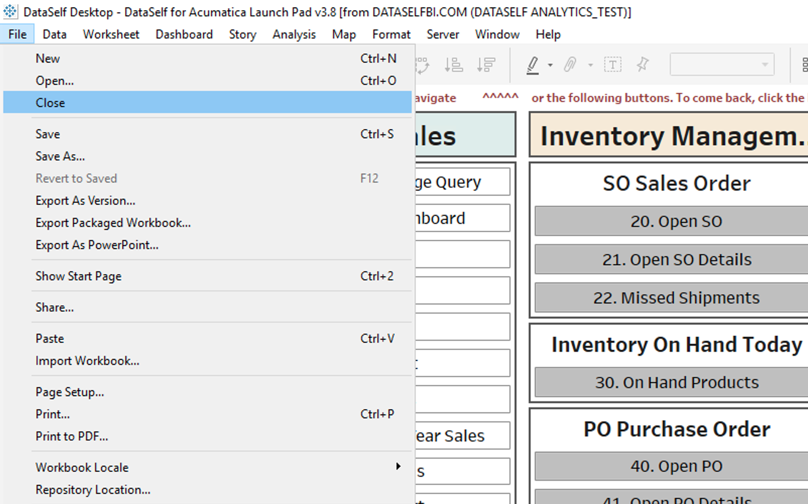 Example: Select DataSelf for Acumatica - Launch Pad v3.8 from the Find menu.