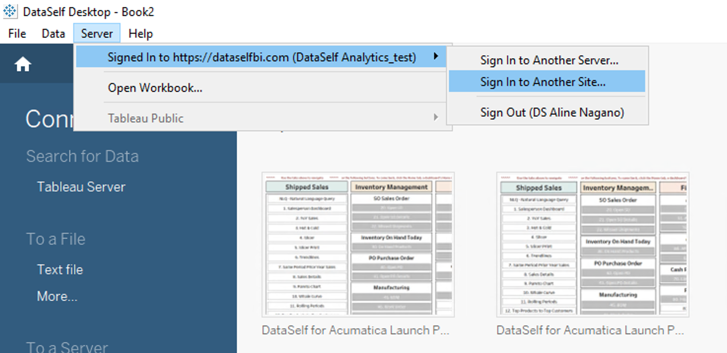 On Tableau Desktop, sign in to the Tableau Site with the workbook to copy.