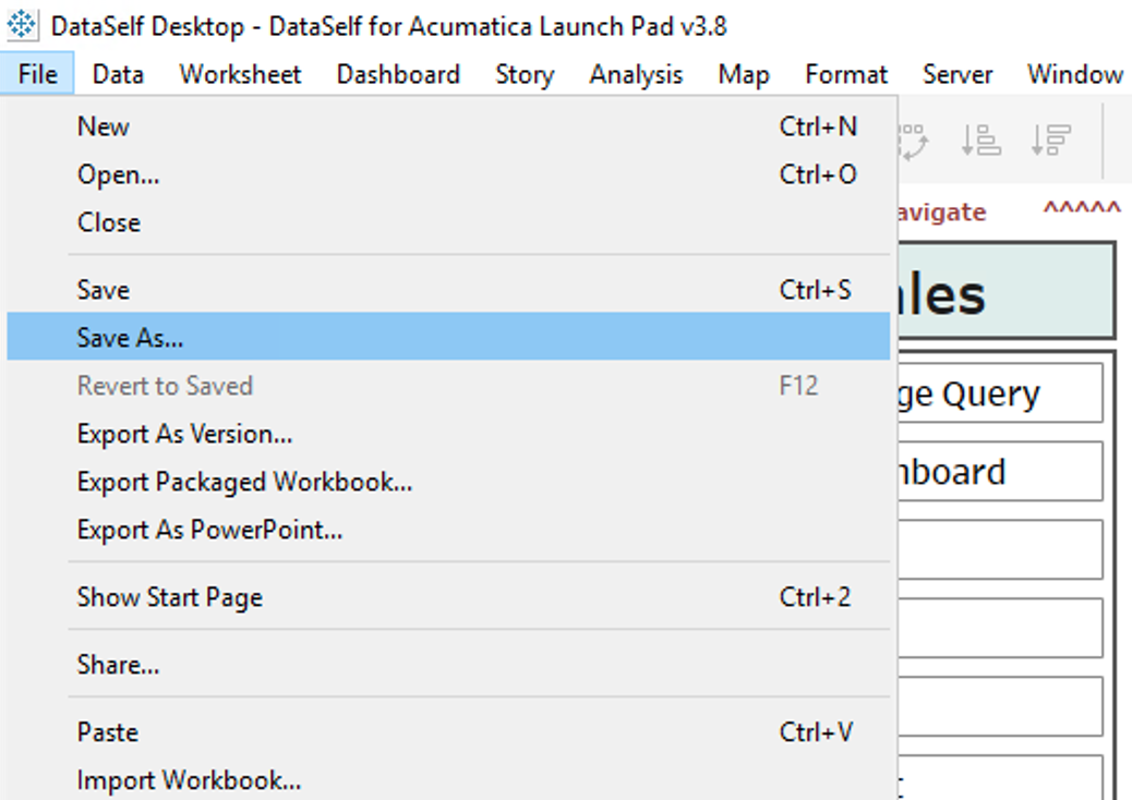 Open the desired Tableau Workbook on Tableau Desktop