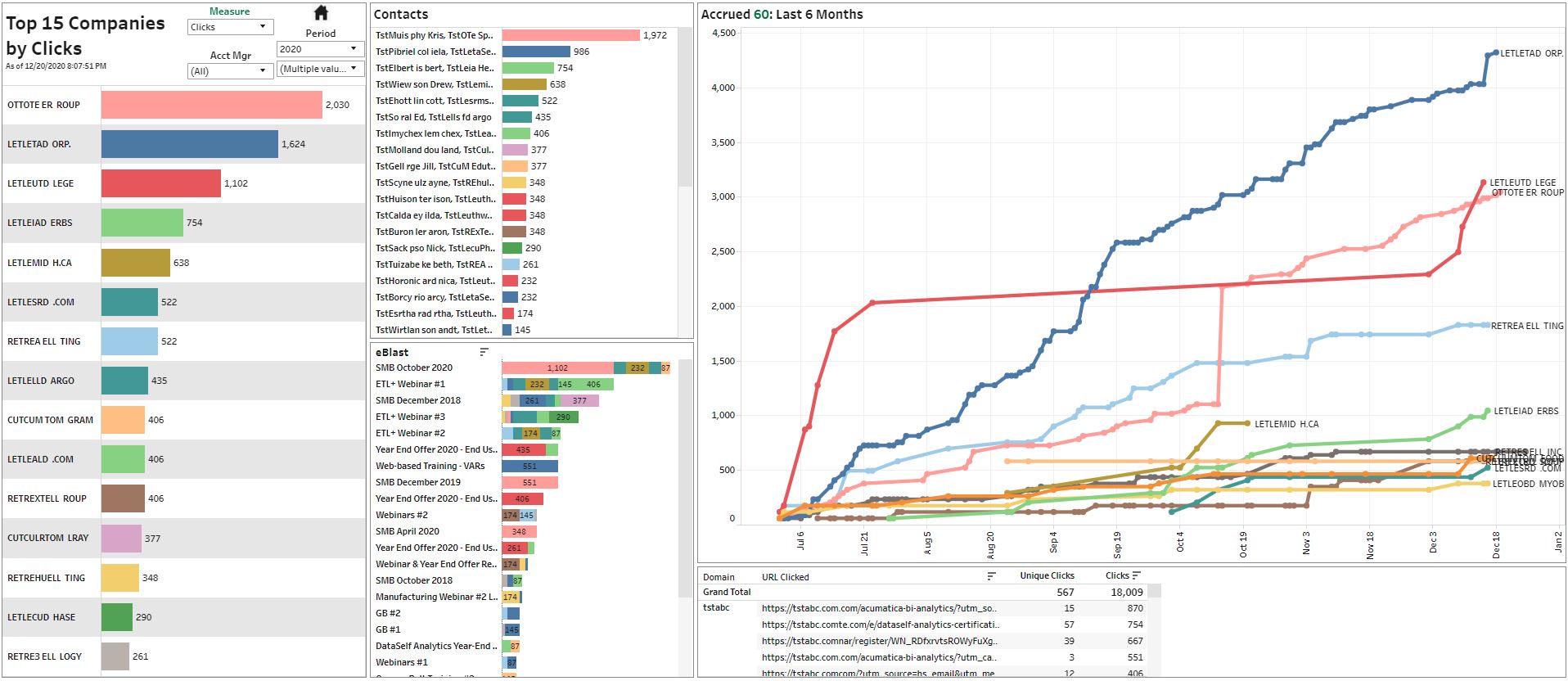 Easy and interactive ways to analyze which companies and individuals have been interacting with your marketing emails across marketing campaigns.