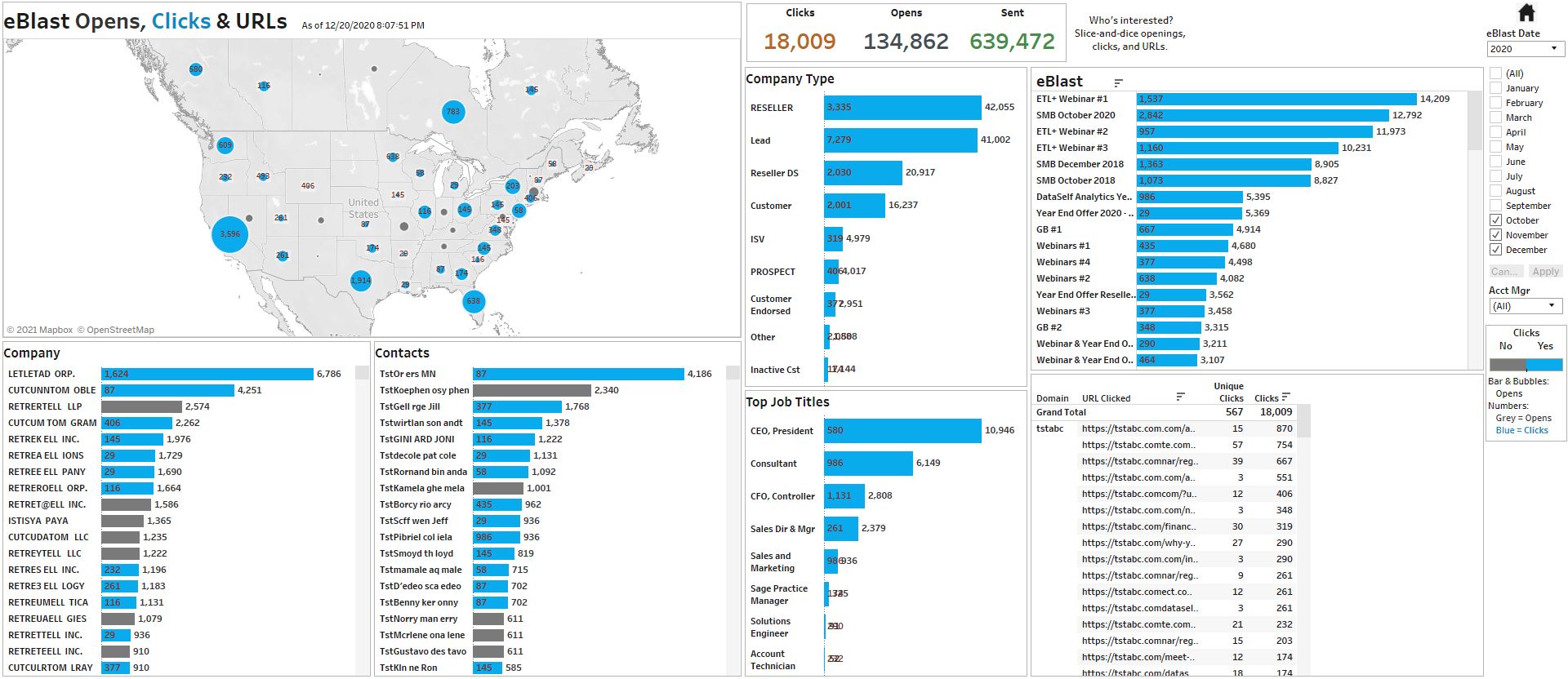 Easy and interactive ways to analyze trends from companies and individuals interacting with your eBlasts across campaigns.