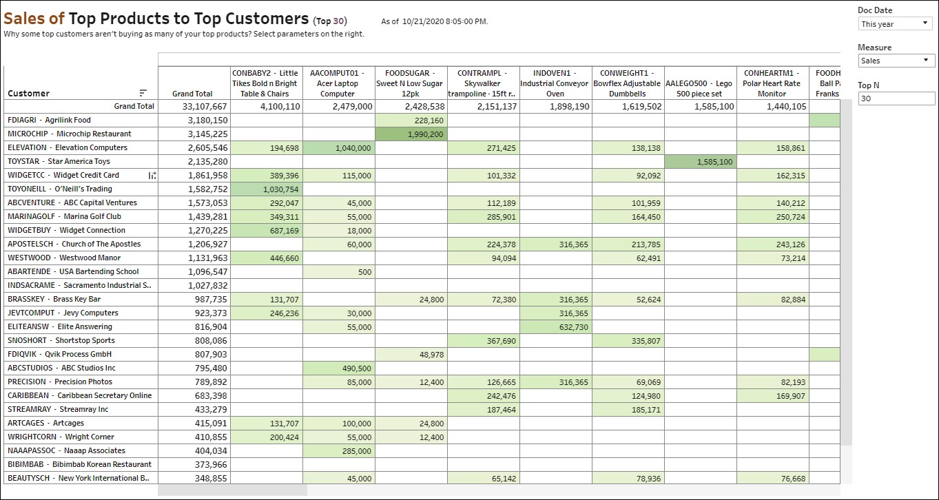 Why some top customers aren’t buying as many of your top products? Select parameters on the right.