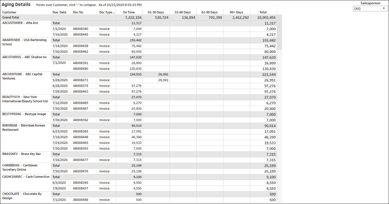 Easily analyze and slice and dice your detailed open AR Aging information.