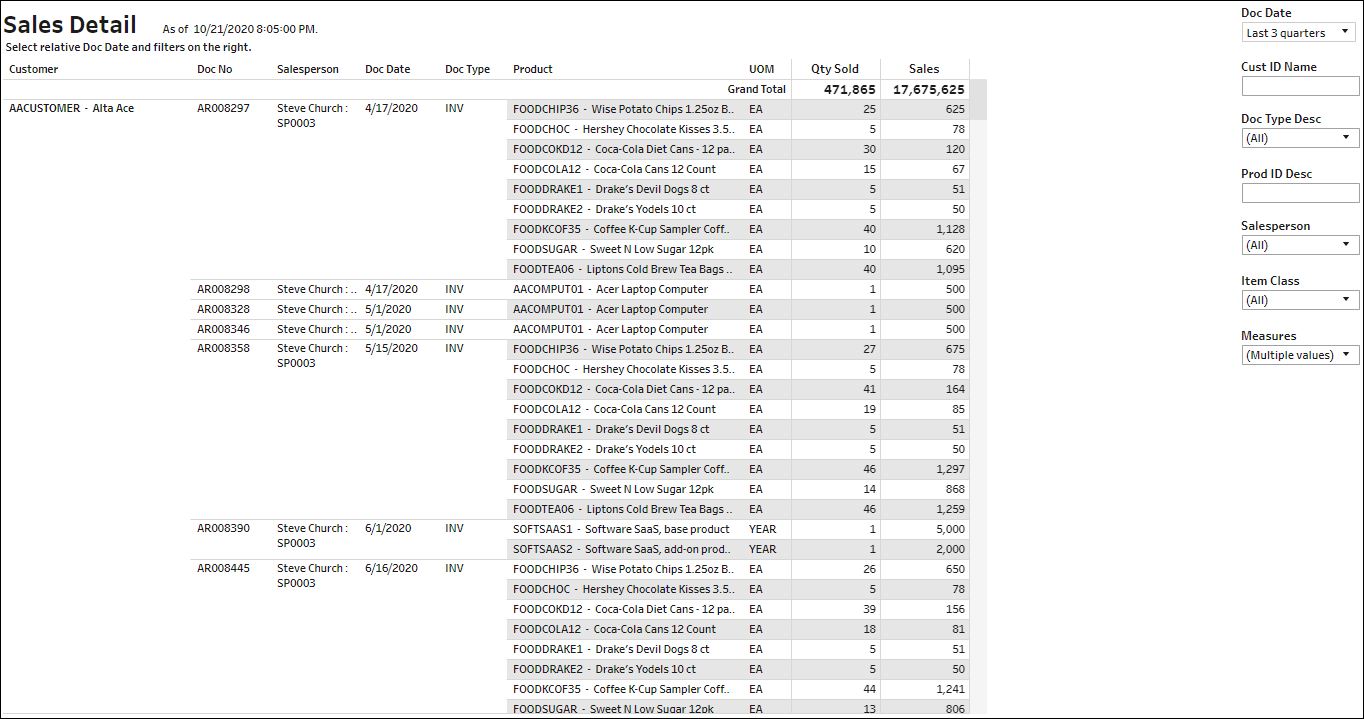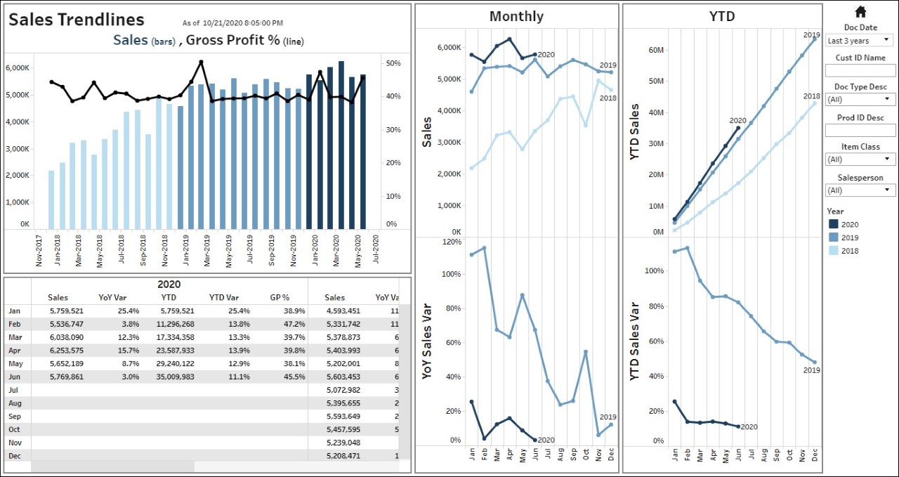 Easy and extensive ways to slice and dice sales information in this year, as well as comparing to the same period last year.