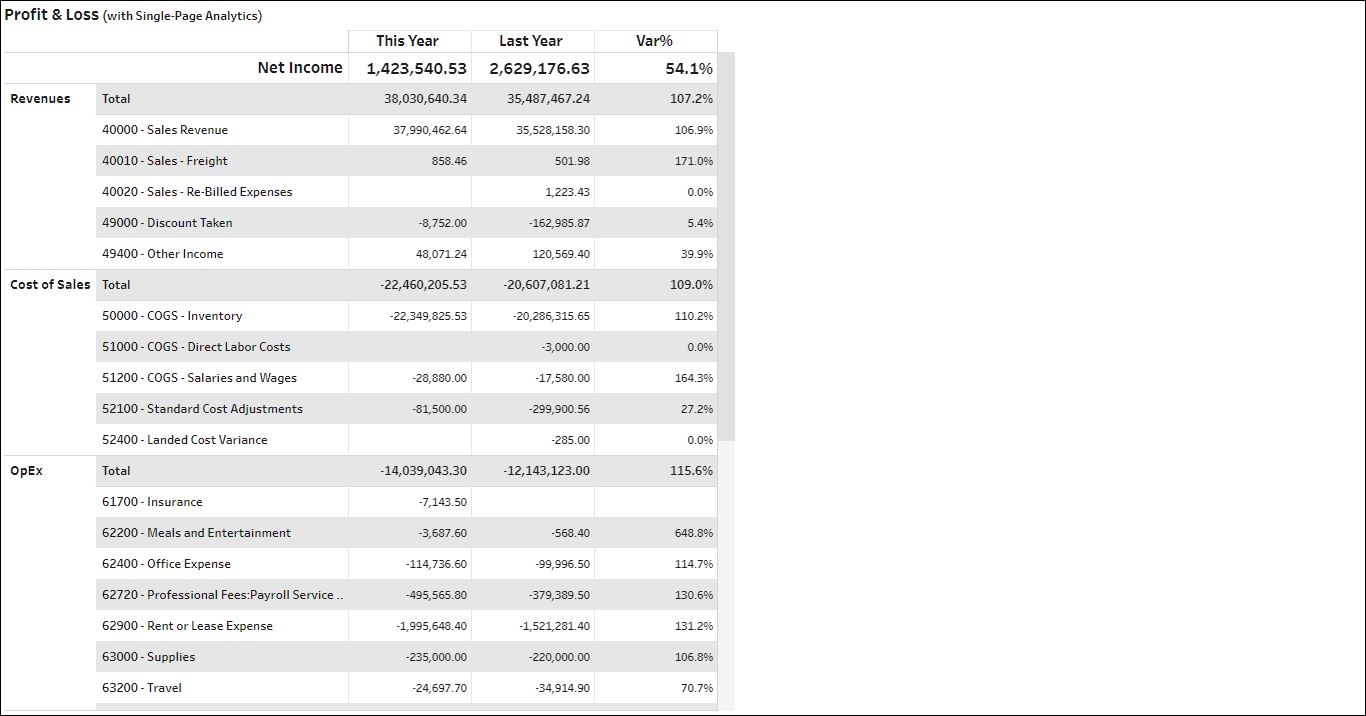 Users with the Viewer license can extensively slice and dice their sales data by using the dropdown lists and hovering over top-left blank area, clicking +/- to expand/collapse.
