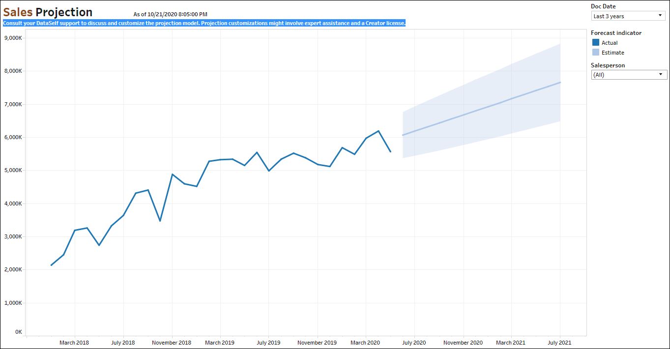 Consult your DataSelf support to discuss and customize the projection model. Projection customizations might involve expert assistance and a Desktop license.