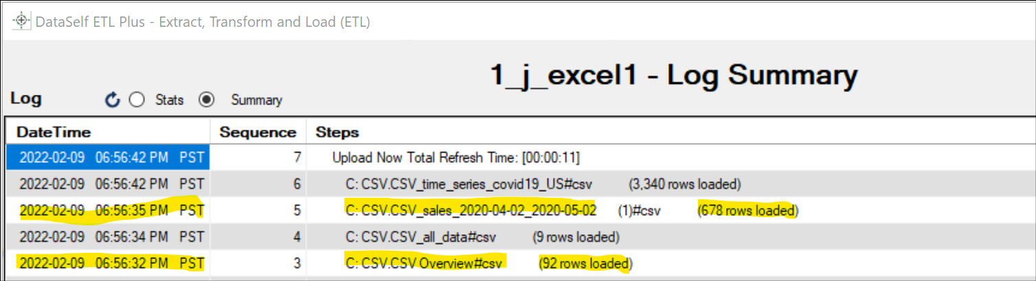 Logicon. Log page help here.Scroll down on the log page and double-check that no table load failed, and the row count matches with the text tables. Following is an example highlighting two tables and their loaded row count.