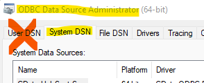 Create or use an ODBC System DSN (instead of User DSN)