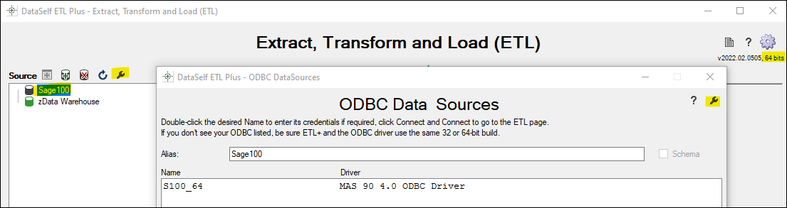 Can’t find your ODBC? Be sure ETL+ and the ODBC have the same 32/64bit build.