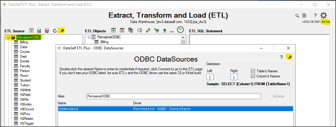 ETL+ Connection to a Pervasive ODBC