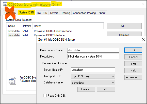 Example of a Pervasive ODBC configuration