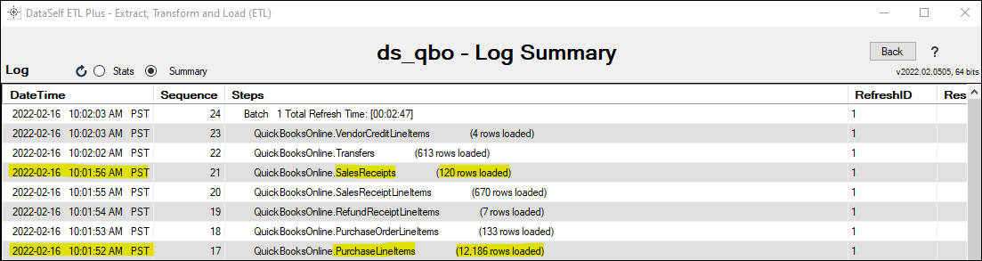 Logicon. Log page help here.Scroll down on the log page and double-check that no table load failed, and the row count matches with the Quickbooks tables. Following is an example highlighting two tables and their loaded row count.