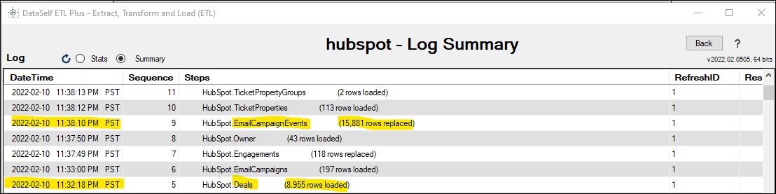 Logicon. Log page help here.Scroll down on the log page and double-check that no table load failed, and the row count matches with the Shopify tables. Following is an example highlighting two tables and their loaded row count.