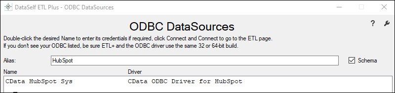ODBC Data Sourcespage, select the correct ODBC Name from the list.ODBC requiring credentials:
