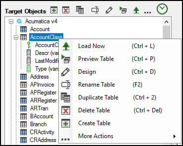Select a Table in the Target Objects panel → Design. More at: ETL+ Design Page