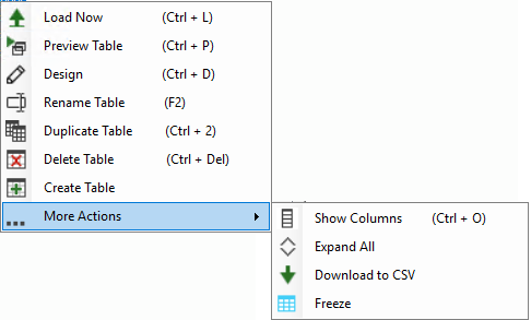 Load Type: Controls how the data load process for the selected table.