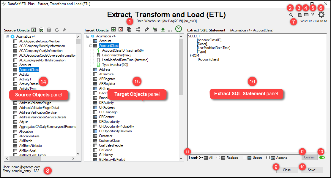 ![]() Source Objects panel of ETL+ Extract, Transform and Load (ETL) window. ![]() Source Objects panel v2023.07