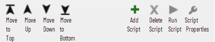 Script buttons. 1 – Add Script, 2 – Delete Script, 3 – Run Script, Script Properties