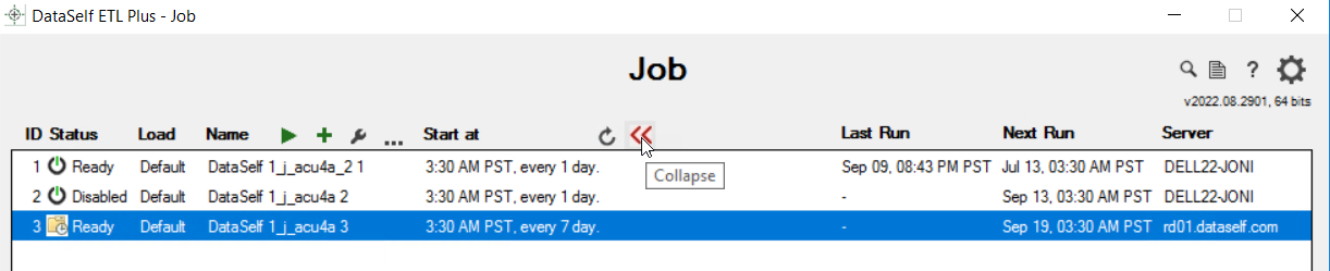 DataSelf Agent (Recommended): ETL+ Windows Service provides a secure, easy, and powerful method to run Job schedules. It also provides remote ETL+ Job management: