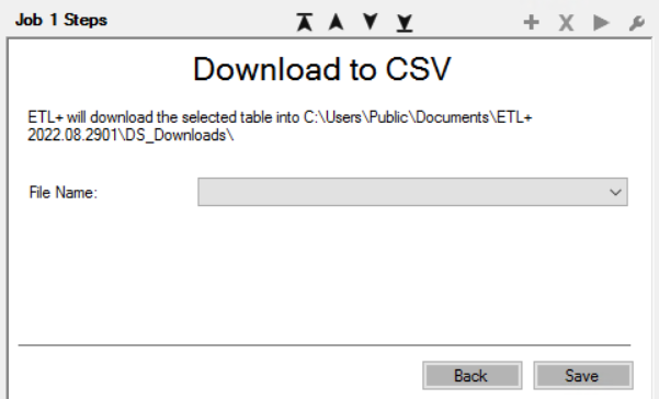 Downloads the data from the selected step into a .CSV file.