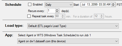 Selects either DataSelf Agent or WTS as the scheduler used to run the ETL+ job.