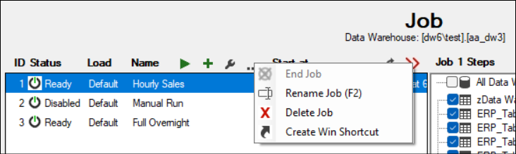 End Job. Stops the job on the selected row if it is currently running.