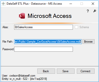 Example configured to connect to local file ETLSalesAccess.mdb