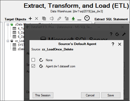 The Refresh Source Metadata icon shows a small A when a default Agent has been selected.