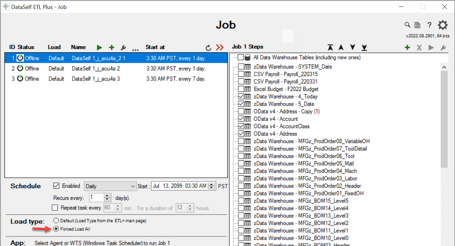Create a new job on the ETL+ Job Page to run with Forced Load All: