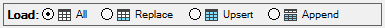 Load All, Load Replace, Load Upsert, and Load Append.