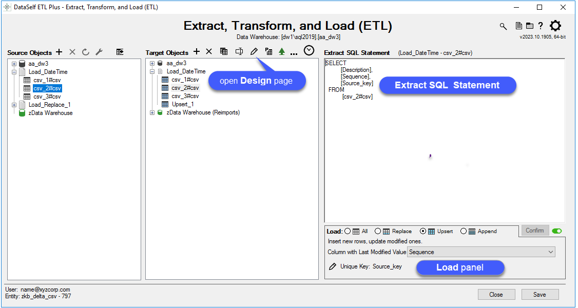 Load panel – part of ETL+ Extract, Transform and Load (ETL) Page