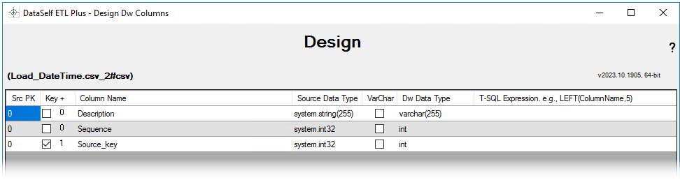 See screenshots below for Extract SQL Statement, Load panel settings and Design page.
