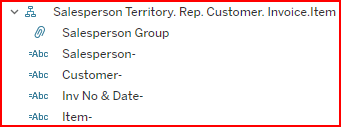 There was nothing special about adding a dash. You can use whatever works for you to differentiate the field name.Make copies of the Customer, Inv No, Invoice Date, and Item fields to add to the hierarchy.