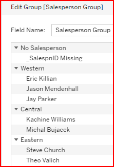 Create a Tableau group based on Salesperson, grouping salespeople into territories: