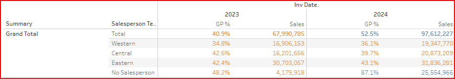 Western, Central, Eastern, with an additional group forNo Salesperson.