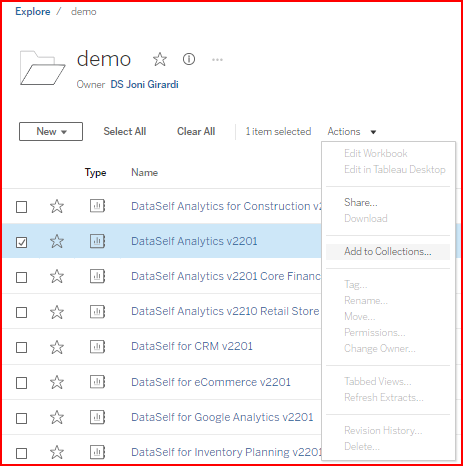 Tableau Help Link: Organize Items in a Collection - Tableau