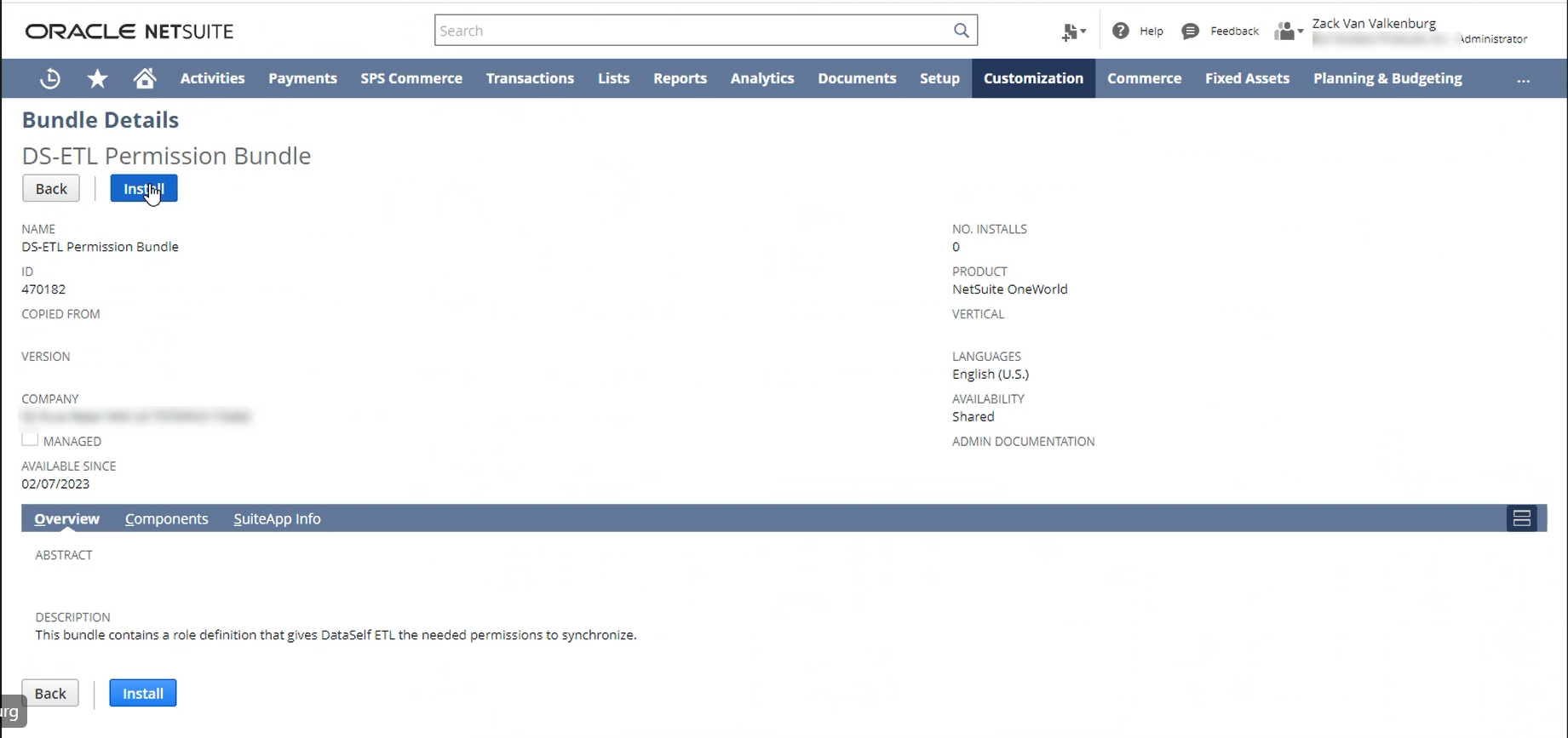 DS-ETL Permission Bundle.Click Install.