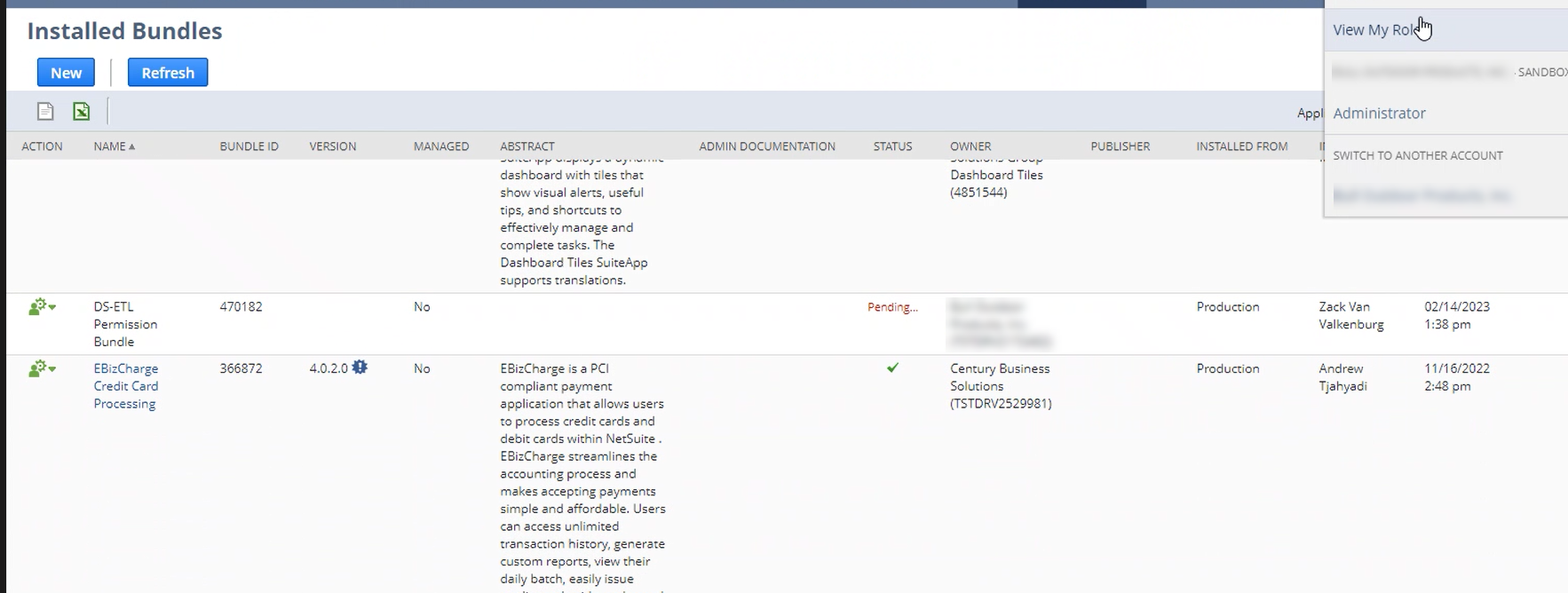 SuiteBundler > Search & Install Bundles > List