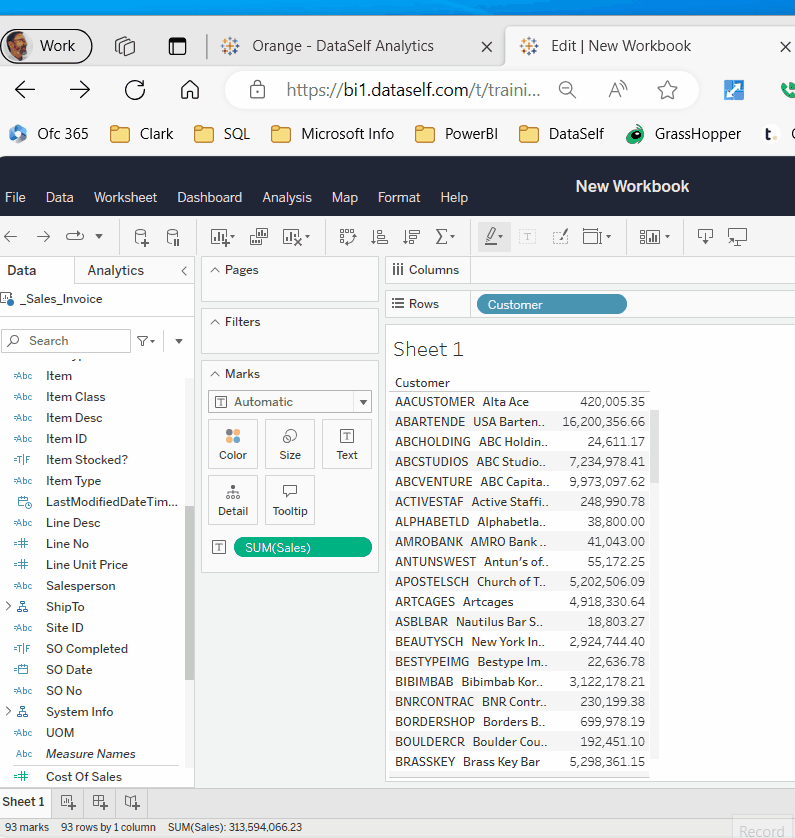 The Abc indicates you are displaying a numeric measure value as text rather than color or size.The Sales by Customer view is done!
