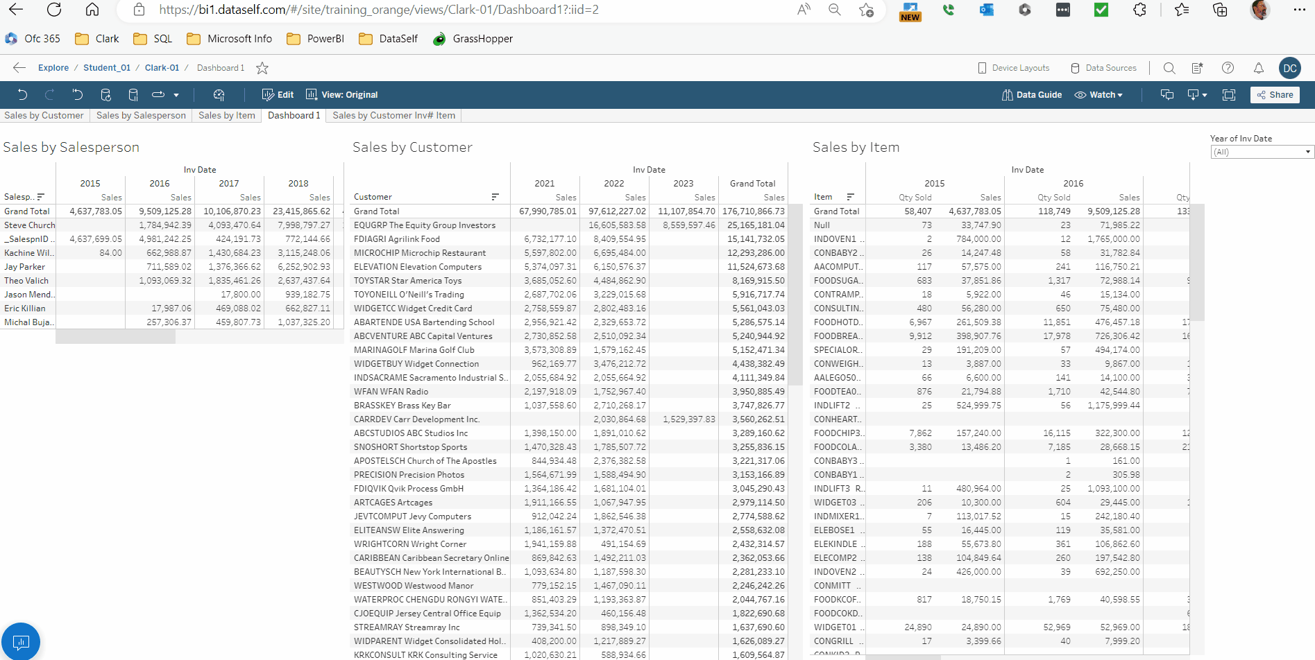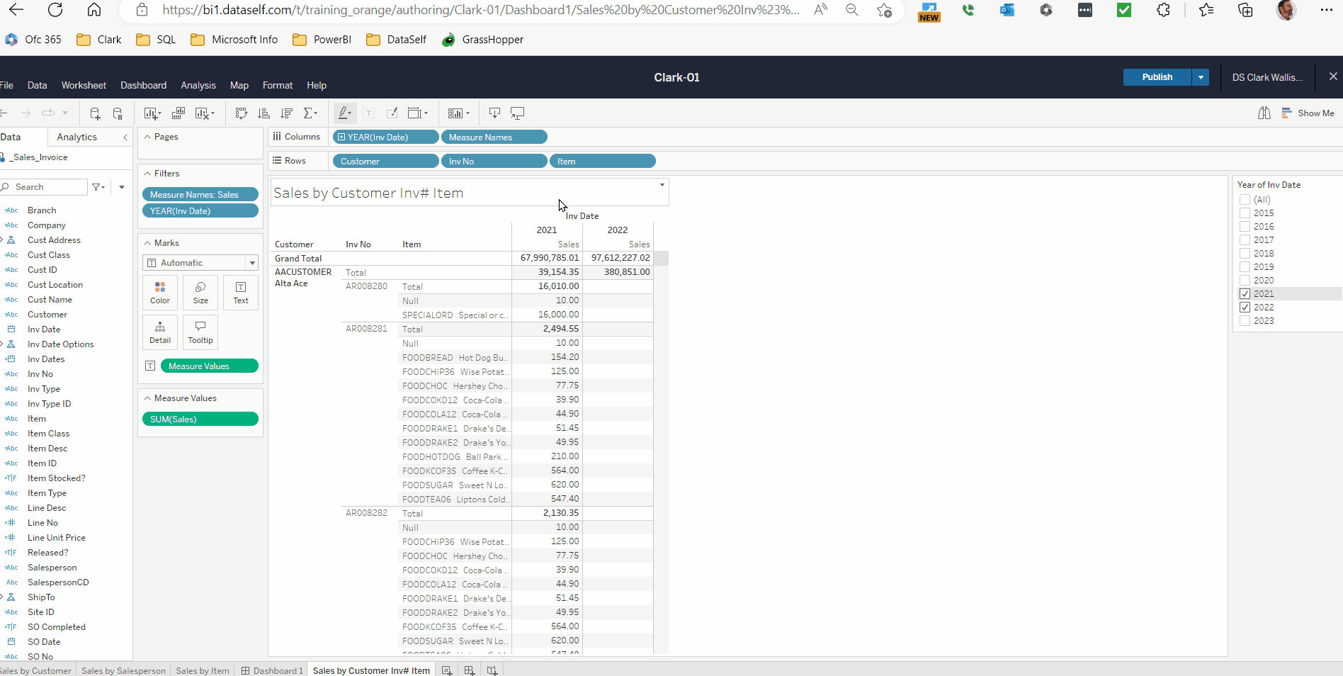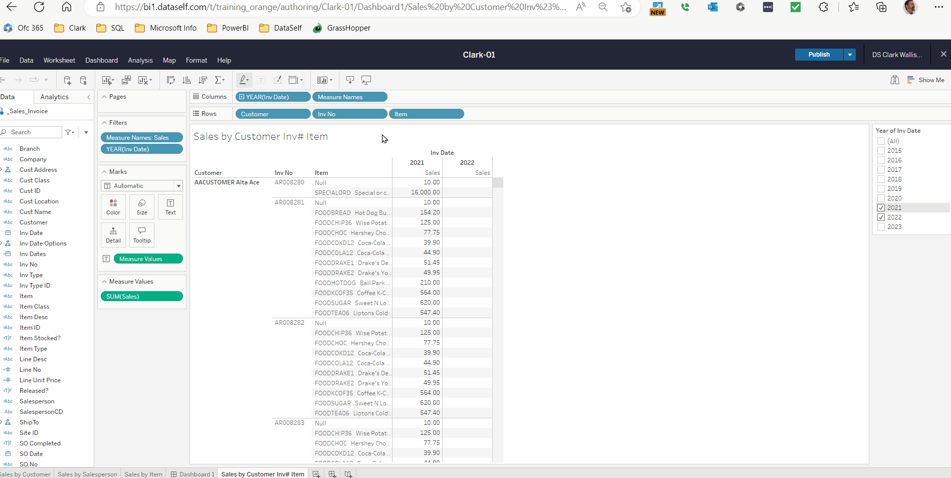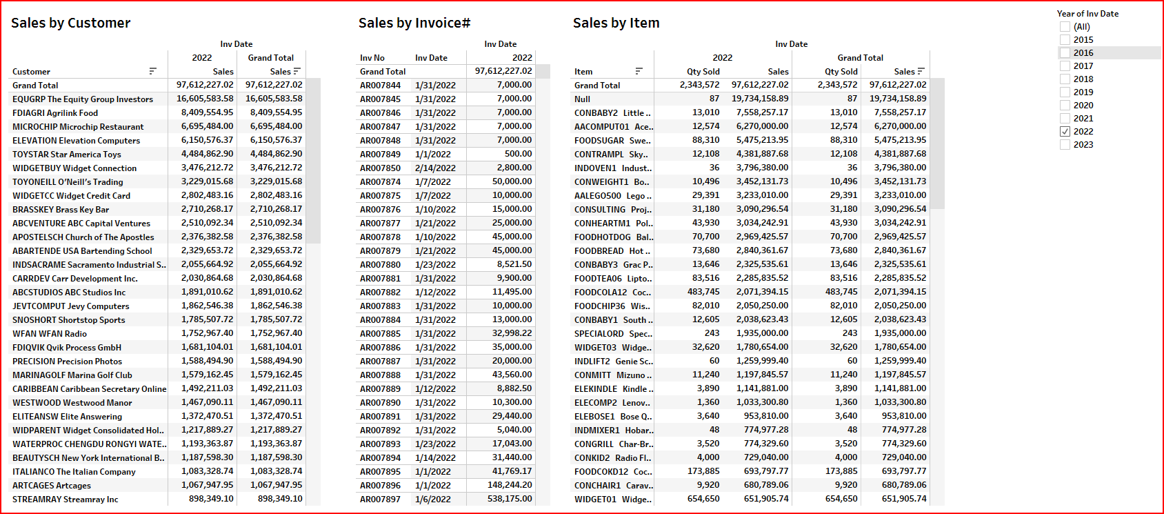 You already have worksheets for Sales by Customer, Inv No and Item.