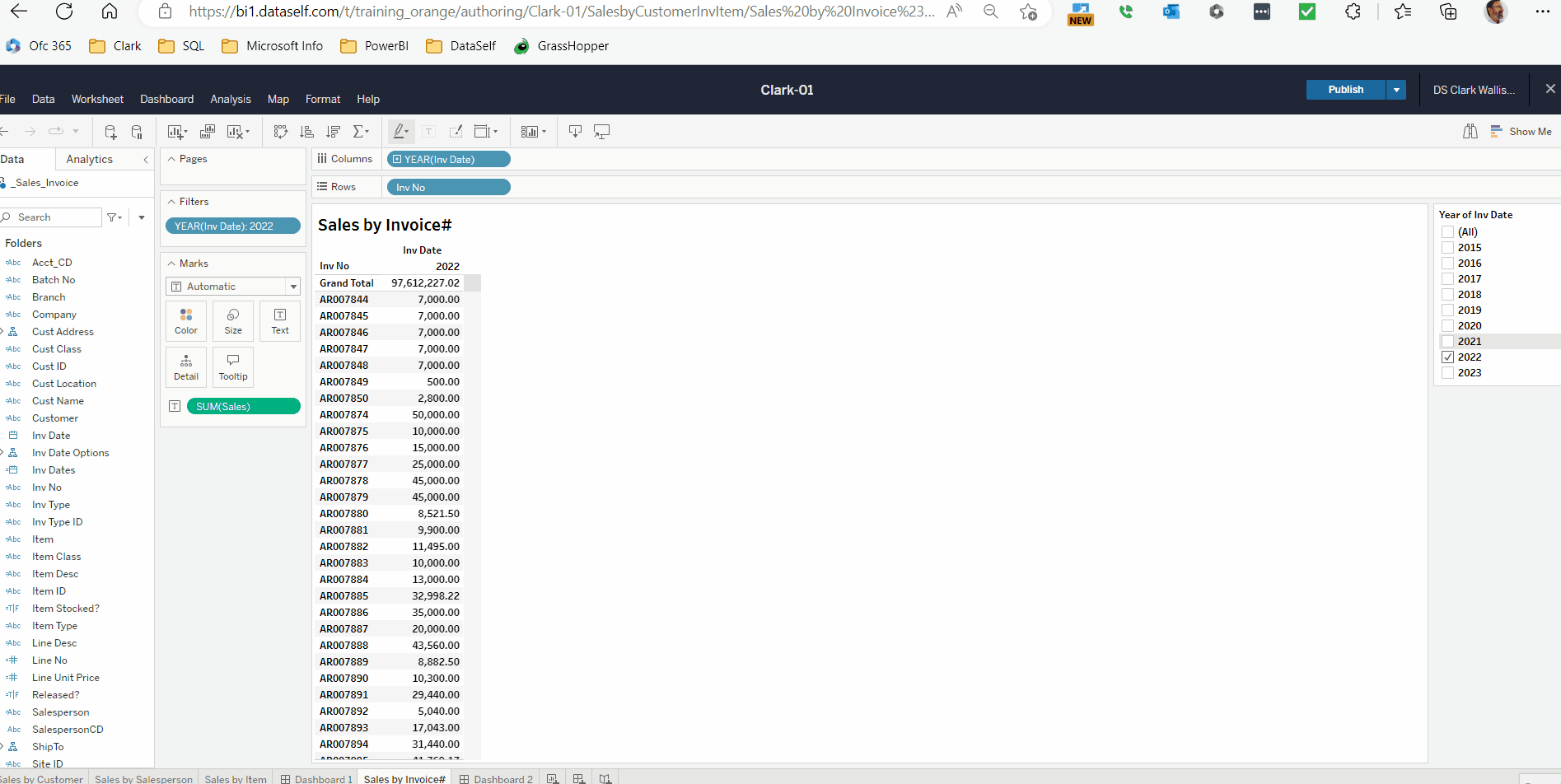 Inv Datefield after theInv NoTableau will automatically group the Invoice Date by Year. To convert it to an exact date is two steps.