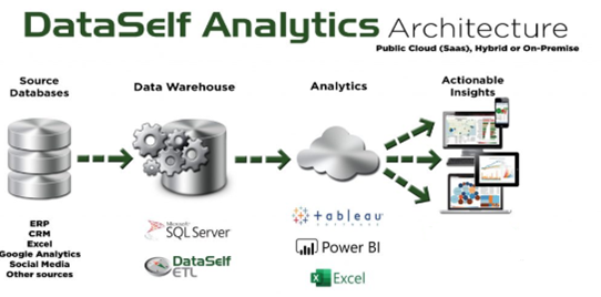 Data warehouse: DataSelf ETL+ extracts the data from the source system(s) into a MS SQL Server data warehouse for a single version of the truth, data consolidation, ease of reporting and fast performance.