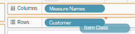 On Rows, drag Customer to the middle of the fields (note the red down arrow when dragging and dropping fields - the down arrow indicates where the field will be inserted). Drag Customer to the far right and see how the data displays differently, then move it back to the left.