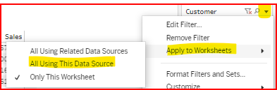 Customerdimension field on the Rows and select Show Filter.Rename the sheet. Right-click Sheet 1 and rename it to Sales by Customer.