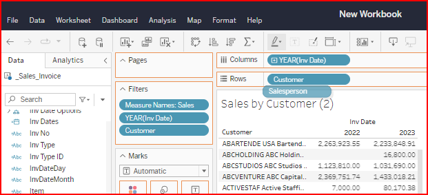 Activity 6: Duplicate the Sales by Customer worksheet and modify it to show Sales by Inv No & Inv Date for the last two years.
